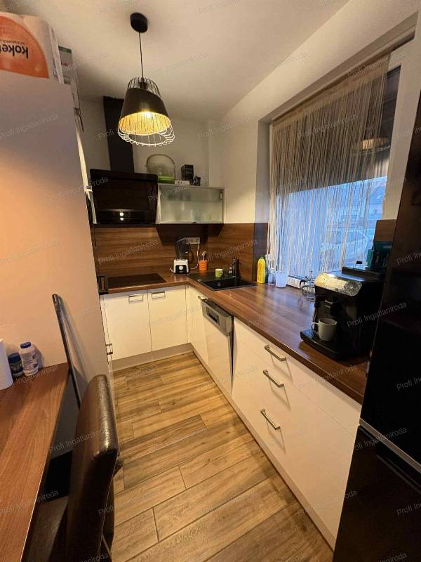 Ménfőcsanak elején eladó egy modern, fiatalos, 2019-ben épült, földszinti, nappali +1 szobás, 45 m2-es, + terasszal, 80 m2-es saját kerttel rendelkező téglalakás, zárt udvari beállóval, beépített bútorokkal. 2-3 hónap múlva völtözhető. Elosztása: amerikai konyhás nappali 25,7 m2, szoba 10,53 m2, fürdő 5,23 m2, tároló 1 m2, folyosó 2,5 m2, terasz 6 m2. A ház 2019-ben épült: - 30 as phorotherm tégla - 12 cm hungarocell szigetelés - 3 rétegű műanyag nyílászárók, elektromos redőnnyel, szúnyoghálóval - házközponti fűtés, egyedi mérővel - padlófűtés, a fürdőben törölköző szárítóval - hűtő-fűtő klíma - beépített modern konyhabútor, gépekkel( indukciós főzőlap, elektromos sütő, beépített mosogató gép, - beépített bútor az előszobában - térkövezett terasz - 80 m2 parkosított udvar - kerti csap, öntöző rendszer kiépítve - zárt udvari gépkocsi beálló, benne van az árban - riasztó - alaocsony rezsi, közös költség melyben benne van a fűtés, és a melegvíz. - külön kell fizetni szemét, 2000 Ft /hó, villany 5600 Ft Ménfőcsanak Győr része, számozott busszal megközelíthető, a lakástól pár perc alatt elérhető(1, 21, 22, 24, 37), helyben bölcsőde, óvoda, iskola megtalálható. A közelben játszótér, és bevásárlási lehetőségek gyalogosan, és 2 perc autóútra elérhetők ( Metró, TESCÓ, Familí Center REAL). Autópálya 1 km belül megtalálható. Ajánlom fiataloknak, vagy idősebbeknek, akik már nem szeretnék a nagy családiház rezsijét, és kerti munkáját végezni. További kérdéseivel keressen bizalommal: Pfeiferné Zsuzsa