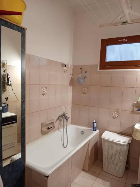 Pilisszentkereszten mesébe illő, vadregényes környezetben, patak közvetlen közelében eladó egy számos lehetőséget rejtő ikerház egyik lakása A másik lakás jelenleg nem lakott, szintén eladó. Használati megállapodás a közeljövőben rendelkezésre áll. A teljes ingatlan akár 4 különálló lakássá is alakítható, vagy össze is nyitható. A telek 579 nm-es, sík, gondozott. Az épület teljes egésze alatt szuterénszint található garázzsal és rengeteg tárolóval. A lakás 110 nm-es, beosztása: előszoba, konyha/étkező, 2 szoba, fürdőszoba, wc. A tetőtérben nappali, szoba, fürdőszoba, wc, konyha, erkély. Közművek: víz, villany, gáz, emésztő. A fűtés gáz- és vegyestüzelésű kazánokról működik, de további kémények állnak rendelkezésre alternatív fűtés kialakításához (cserépkályha, kandalló). Az ingatlan jellegéből adódóan kiválóan alkalmas lehet egyéb hasznosításra is: irodának, műhelynek, egészségügyi központnak, rendelőnek, bölcsődének/óvodának, befektetési vagy turisztikai célra. Több generáció szeparált együttélésére is alkalmas. Az ingatlan a tömegközlekedést tekintve is kiváló helyen fekszik, a buszmegállók néhány perces sétával elérhetőek.