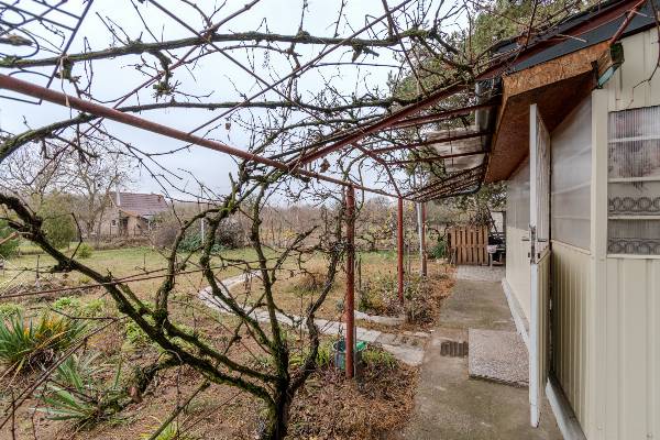 Bocskaikert-Monostordűlő, 700 m2-es bekerített, szántó művelési ágban lévő földterület, 29 m2-es házzal, 10 m2-es tárolóval, széles utcafronttal eladó. A telek körbekerített, villany, fúrt kút van, 4-es főút 1,4 km, buszmegálló 15 perc gyalog.