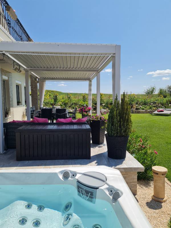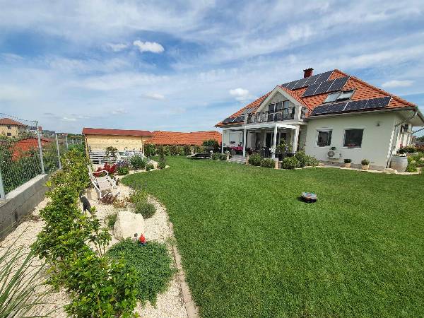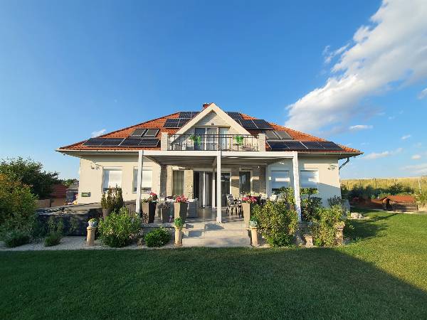 TULAJDONOSTÓL eladó Pest megye határában, de már Fejér megyében, az etyeki Zölddomb lakópark oldalában a mező szélén, csendes, zöldövezeti-, kulturált kertvárosi lakókörnyezetben, kiváló infrastrukturális adottságokkal rendelkező utcafronti telken, D-DNY-i fekvésű, felszerelt, azonnal költözhető családi házunk. Ingatlanunkban a rusztikus, a romantikus és a modern stílusjegyek harmonikusan kiegészítik egymást, ahová minden nap szívesen megy haza, örömmel várja családját és fogadja vendégeit. A telek 786nm, melyen található a kétszintes, 2 nappalival rendelkező, 5szobás, 4fürdőszobás, 280nm-es ház és egy 35nm-es terasz, valamint a parkosított, füvesített kert. Az ingatlan önálló helyrajzi számmal rendelkezik, tehermentes, azonnal költözhető. Energetikai besorolása: A+++ Az ingatlant kedvező beosztásának köszönhetően jó szívvel ajánljuk családoknak, családalapításra készülő pároknak, két generációnak, vagy akár azoknak is, akik egy külön szinten szeretnének irodát működtetni. A 280nm ingatlan kettő, egyenlő terület elosztású szinten helyezkedik el. Földszint: előszoba, lépcsőfeljáró, kamra, 2 állásos garázs, gardrób (kabátok + cipők), nappali, szoba, fürdőszoba (mosókonyha), konyha, lakosztály (hálószoba, gardrób, fürdőszoba) Emelet: nappali, 2 szoba, fürdőszoba, lakosztály (háló, fürdőszoba, gardrób) Padlástér: remek lehetőség tárolásra. Kényelmet szolgáló kiegészítők: - Két nappali, két kandalló – a meghitt estékhez - Gázkazános radiátorok + padlófűtés több helyiségben – egyenletes, kellemes meleg - 4 db hűtő-fűtő klíma – teljes hőkomfort egész évben - 21 db napelem – az energiatudatosság jegyében, ingyenes áramfogyasztással - Központi melegvíztartály - akár mindannyian fürödhetünk egyidőben - Központi vízlágyító rendszer - Plusz egy központi bojler telepítésre került - gázszolgáltatás akadozása esetén biztosított a melegvíz ellátás - Mozgatható szúnyoghálók minden helyiségben - nyugodt pihenés, alvás biztosított - Motoros, távirányítható redőnyök minden ablakon - intim szféra biztosított - Emeleti tetőtéri ablakokon külső hővédő rolók, belül pedig árnyékoló + sötétítő rolók a kényelem érdekében - Riasztó és tűzjelző rendszer az egész házban - helyiségek és nyílászárók biztosítása érdekében A kert is a pihenést szolgálja: - Kamera rendszer minden irányba - az otthontól távol is rápillanthatunk ingatlanunkra - Robotfűnyíró – hogy a szabadidő tényleg szabad legyen - 2db kerti csap + kútról és hálózatról is működő locsolórendszer - 3db locsolókonnektor, egyszerű külső vízhasználathoz - bioklimatikus pergola a teraszon – szabályozható fény és árnyék - 4 személyes jacuzzi, minden napra egy kis wellness - 5db kültéri parkoló, a kényelmes vendégfogadásra. A közlekedés: - Kelenföld, az M4-es metró-, és buszvégállomás autóval 20-30 perc. - M0, M1, M7 autópályák 10-20perc alatt elérhetőek. - A 760-as, 762-es és 767-es buszok megállója 900méterre találhatóak. - Vonatállomás legközelebb Biatorbágyon és Herceghalmon található autóval 12percre. - Etyek központja (élelmiszerbolt, orvosi rendelő, bölcsőde, óvoda, iskola… 1km. Az ingatlan vételára: 350.000.000.-Ft Amennyiben úgy érzi, szívesen lenne a meghirdetett mező széli ingatlan tulajdonosa, úgy lépjen kapcsolatba velünk, hogy időpontot egyeztessünk a ház megtekintésére. További információkat és képeket az ingatlan saját honlapján, az etyekiingatlan.hu oldalon tekinthet meg. Kérjük, hogy ingatlanközvetítők ne keressenek!