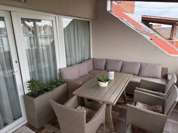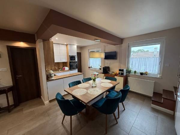 Szeged egyik legkeresettebb környékén, a Hétvezér utca körúthoz közeli, mégis csendes részén kínáljuk megvételre ezt a nettó 144 m²-es, belső kétszintes, 3. emeleti, 3+2 fél szobás, nappalis lakást, egy zárt udvaros, 6 lakásos társasházban. A tetőteret 7 éve építettük be, földhivatalilag rendezett, lakótérként került bejegyzésre. Használati megosztással, akár ketté is osztható, így két külön lakrész kialakítására is van lehetőség, mivel a fenti térben is kialakításra került minden olyan feltétel - fürdőszoba, fűtési mód, lépcsőházi bejárás -, ami ezt lehetővé teszi. Használati megosztás után - kisebb átalakítással - akár két lakásként is értékesíthető, használható. Ez a lakás azoknak szól, akik nem szeretnének kompromisszumot kötni: tágas terek, városi panoráma, praktikus elrendezés és kiváló lokáció. Elrendezés: Alsó szint (felújított): Világos konyha villany főzőlappal és gőzfunkciós sütővel – ideális választás, ha sokat főzöl, Tágas étkező, Külön hálószoba + 2 gyerekszoba, Fürdőszoba és külön WC, Kamra, 6 m²-es erkély – nyugodt reggeli vagy esti pihenés helyszíne. Felső szint (7 éve beépített): Impozáns, 33 m²-es nappali, Vendégszoba és dolgozószoba, Zuhanyzós fürdőszoba WC-vel, 15 m²-es terasz – fantasztikus kilátással a városra, tökéletes nyári grillezésekhez és ünnepi panorámához. A felső lakrész nem csak lakáson belül, hanem lépcsőházból is megközelíthető. Extrák és kényelmi megoldások: - Klíma az alsó és felső szinten is, - 32 amper bevezetve – erősebb konyhai vagy háztartási gépekhez is megfelelő, - Műanyag nyílászárók, redőnnyel és szúnyoghálóval, - Beltéri ajtók cserélve, - A villanyvezetékek 90%-ban megújultak, új villanydoboz került elhelyezésre, és a társasház is felújította a gerinc vezetéket - A felső szint beépítésével együtt a társasház tetőszerkezete is teljesen felújításra került. Tárolók és parkolás: Saját, zárható tároló az alagsorban (kizárólagos használat), + közös tárolóhelyiség is rendelkezésre áll, Garázs 1 percre a lakástól, külön megvásárolható: 15 millió Ft, Nem fizetős parkolóövezet – ingyenes parkolás az utcán. Lokáció: Belváros, fesztiválok, sétányok – 10-15 percen belül elérhetők, Teraszról látható a szilveszteri tűzijáték, hőlégballonok, a Borfesztivál fényei – felejthetetlen élmények egész évben.