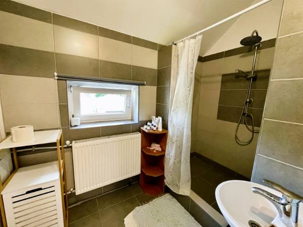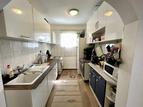 Eladóvá vált Pécs-Patacson 2 lakásos társasházban egy 111m2-es belső 2 szintes felújított téglalakás. Az ingatlan csendes helyen, 1622m2-es sík, rendszeresen karbantartott telken helyezkedik el. Elosztása kiváló, minden helyiség külön nyílik. Földszint: szélfogó, közlekedő, konyha+ étkező, WC-kézmosó, fürdőszoba, tágas nappali, melyből nyílik egy 8 m2-es terasz. Emelet: konyha+ étkező, WC-kézmosó, fürdőszoba, két külön nyíló szoba, melyekből egy 8 m2-es erkélyre léphetünk ki. Az épület a 90-es évek elején épült, melyet jelenlegi lakói folyamatosan újítottak, újítanak. A felújítás során kicserélték a hideg, melegburkolatokat, víz-, villanyhálózatot, műanyag nyílászárókat, beltéri ajtót, konyhabútort, valamint a ház külső szigetelését és a tető szigetelést is. A kétlakásos társasház közös udvara használati megosztással ketté választható az új tulajdonosok között. Az udvar rendezett, egy része még térkövezésre vár, de jelenleg is tökéletesen alkalmas kikapcsolódásra, pihenésre. Melegét gáz-cirkó fűtés adja. Parkolni az zárt udvaron, illetve a garázsban lehetséges. Az ingatlan társasházzá nyilvánítása még folyamatban van, de 1-2 hónapon belül megvalósul. Tehermentes, a vételár megfizetését követően rövid időn belül birtokba vehető. Kiváló lokációnak köszönhetően minden kiszolgáló egység megtalálható a közelben, iskola, éttermek, boltok, orvosi rendelő, buszmegálló. További kérdés és megtekintés esetén keressen bizalommal!
