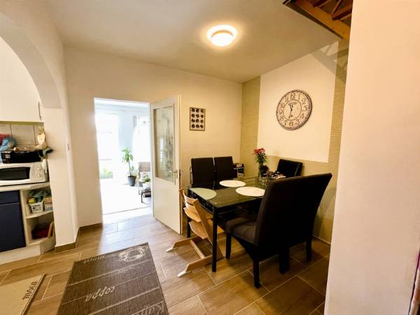 Eladóvá vált Pécs-Patacson 2 lakásos társasházban egy 111m2-es belső 2 szintes felújított téglalakás. Az ingatlan csendes helyen, 1622m2-es sík, rendszeresen karbantartott telken helyezkedik el. Elosztása kiváló, minden helyiség külön nyílik. Földszint: szélfogó, közlekedő, konyha+ étkező, WC-kézmosó, fürdőszoba, tágas nappali, melyből nyílik egy 8 m2-es terasz. Emelet: konyha+ étkező, WC-kézmosó, fürdőszoba, két külön nyíló szoba, melyekből egy 8 m2-es erkélyre léphetünk ki. Az épület a 80-as években épült, melyet jelenlegi lakói folyamatosan újítottak, újítanak. A felújítás során kicserélték a hideg, melegburkolatokat, víz-, villanyhálózat egy részét, műanyag nyílászárókat, beltéri ajtót, konyhabútort, valamint a ház külső szigetelését és a tető szigetelést is. A belső lépcső teljes cseréje még folyamatban van, 1-2 héten belül készen lesz. A kétlakásos társasház udvara használati megosztással lesz ketté osztva az új tulajdonosok között. Az hátsó udvarrész fog ehhez a lakáshoz tartozni. Melegét gáz-cirkó fűtés adja. Parkolni az zárt udvaron, illetve a garázsban lehetséges. Az ingatlan társasházzá nyilvánítása még folyamatban van, ami pár héten belül megvalósul. Két külön gázkazán, vízóra lesz kialakítva, melynek folyamatát elindították a tulajdonosok. Tehermentes, a vételár megfizetését követően rövid időn belül birtokba vehető. Kiváló lokációnak köszönhetően minden kiszolgáló egység megtalálható a közelben, iskola, éttermek, boltok, orvosi rendelő, buszmegálló. További kérdés és megtekintés esetén keressen bizalommal!