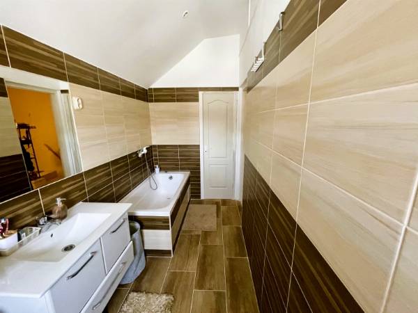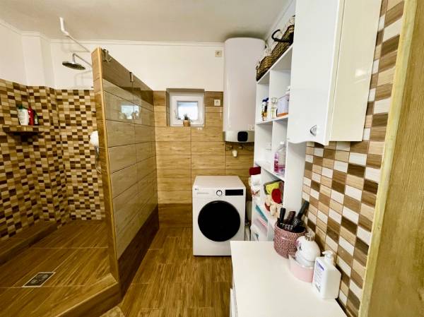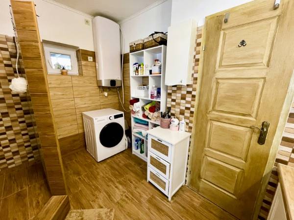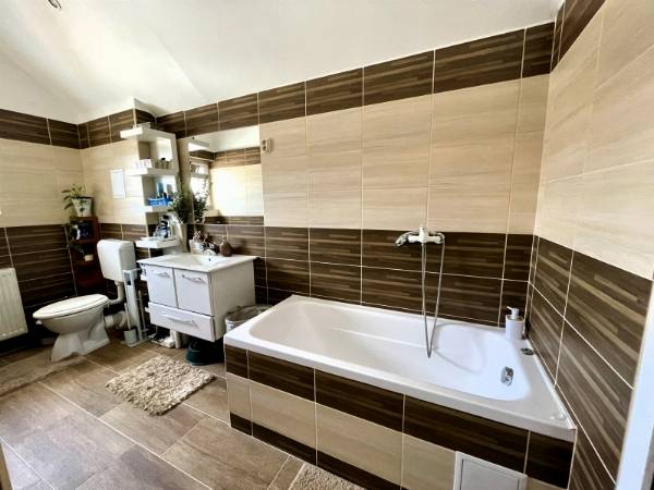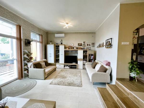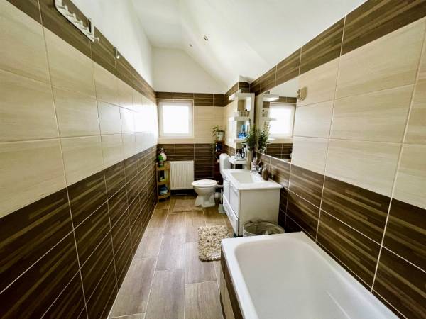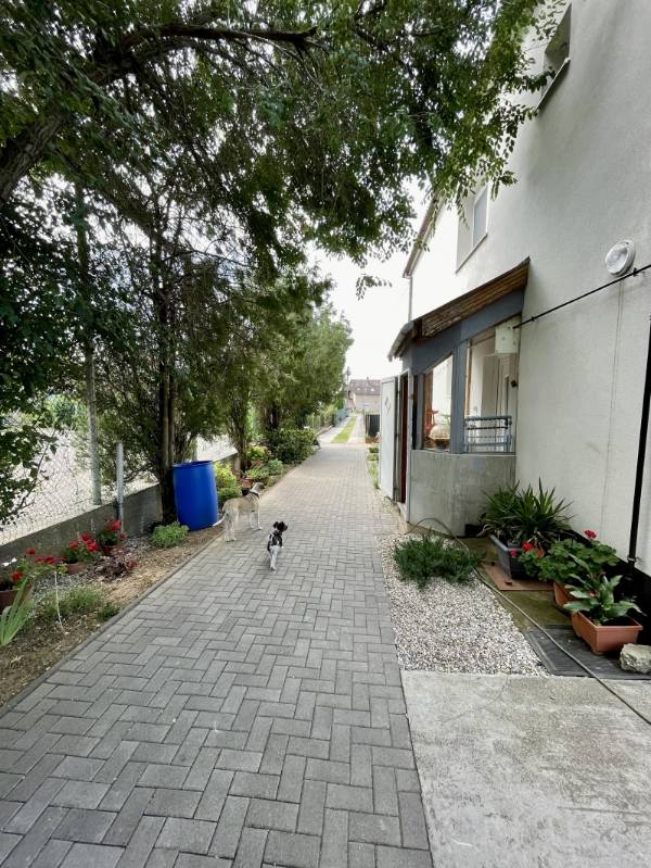 Eladóvá vált Pécs-Patacson 2 lakásos társasházban egy 113m2-es belső 2 szintes, nappali+ 3 hálószobás felújított téglalakás. Az ingatlan csendes helyen, 1622m2-es sík, rendszeresen karbantartott telken helyezkedik el. Elosztása kiváló, minden helyiség külön nyílik. Földszint: télikert, előszoba, konyha+ étkező, fürdőszoba+ WC, tágas nappali, melyből nyílik egy beépített/télisített 8 m2-es terasz. Emelet: közlekedő, fürdőszoba+ WC, 3 külön nyíló szoba, ezek közül 2-ből nyílik egy 8 m2-es erkély. Az épület a 90-es évek elején épült, melyet jelenlegi lakói folyamatosan újítottak, újítanak. A felújítás során kicserélték a hideg, melegburkolatokat, víz-, villanyhálózatot, műanyag nyílászárókat, beltéri ajtót, konyhabútort, valamint a ház külső szigetelését és a tető szigetelést is. A kétlakásos társasház közös udvara használati megosztással ketté választható az új tulajdonosok között. Az udvar rendezett, egy része még térkövezésre vár, de jelenleg is tökéletesen alkalmas kikapcsolódásra, pihenésre. Melegét gáz-cirkó fűtés adja, valamint 3 db hűtő-klíma is beépítésre került. Parkolni az zárt udvaron, illetve a garázsban lehetséges. Az ingatlan társasházzá nyilvánítása még folyamatban van, de 1-2 hónapon belül megvalósul. Tehermentes, a vételár megfizetését követően rövid időn belül birtokba vehető. Kiváló lokációnak köszönhetően minden kiszolgáló egység megtalálható a közelben, iskola, éttermek, boltok, orvosi rendelő, buszmegálló. További kérdés és megtekintés esetén keressen bizalommal!