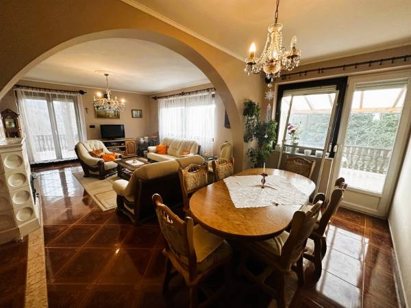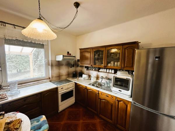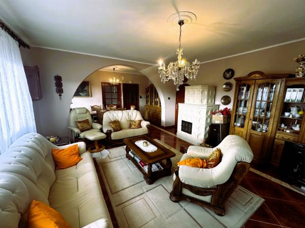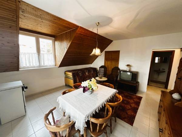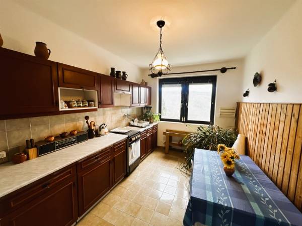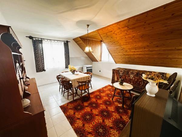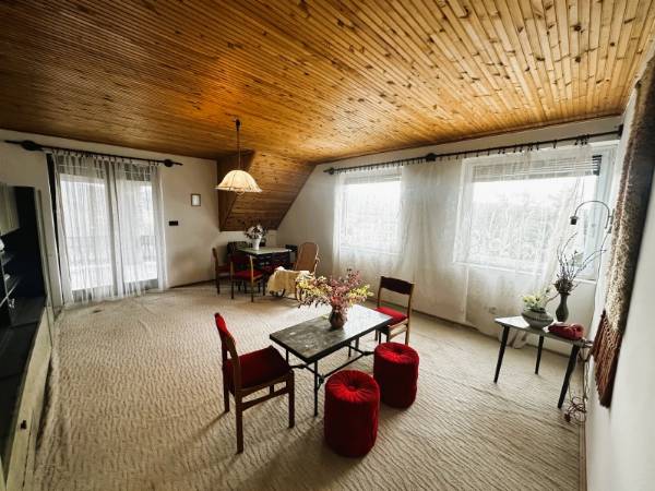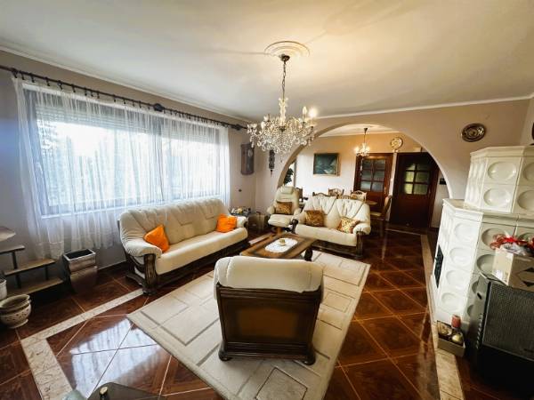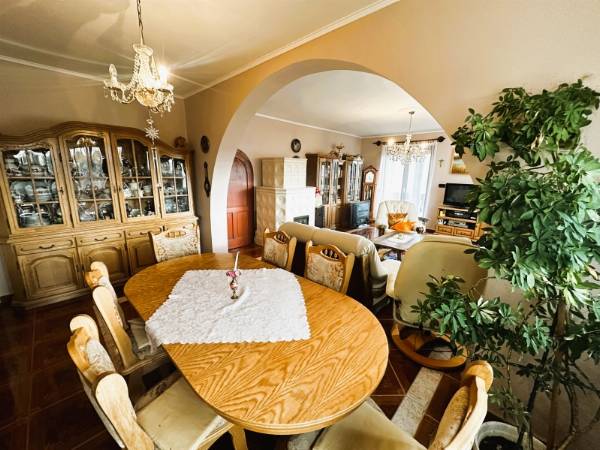 Komló legszebb részén, Szilváson eladó egy 280m2 -es ikerház, Pazar, völgyre néző panorámával. Az ingatlan egy 1109 nm-es telken található. Az 1990-ben épült, tégla szerkezetű, Nappali + 7 szobás, külsőleg hőszigetelt. A ház nyílászárói részben cserélve lettek, fa illetve műanyag nyílászárókra, valamint redőnnyel felszereltek. A ház melegét TÁVFŰTÉS biztosítja padlófűtéssel, illetve a nappaliban egy fatüzelésű kandalló is megtalálható. A ház minden emelete egy-egy teljesen felszerelt és bútorozott lakrész, eltérő dizájnnal. A szintek között egy gyönyörű kézzel faragott tölgyfa lépcsőn tudunk közlekedni. A földszinten található a legalsó lakrész, amelyben nappali, konyha, közlekedőből nyíló fürdőszoba, külön WC, egy folyosó, és a kazánház került kivitelezésre. A présházba és a pincébe is bejárat van a folyosóról, de ezek az udvarról is megközelíthetőek. A nyugodt, és csendes környezetet pedig az ezen a szinten kialakított teraszról lehet megcsodálni. Az első szinten megtalálható egy közlekedő, amelyből hálószoba, külön wc, fürdőszoba, étkező-nappali, és külön konyha található. Ennek a szintnek érdekessége, hogy terasza, és erkélye is van, amelyek kilátást engednek a festői szépségű komlói dombokra. A felső szinten is helyet kapott külön bejárattal rendelkező fürdő, wc, hatalmas nappali, valamint egy konyha-étkező, illetve két hálószoba is. Helyet kapott továbbá ezen az emeleten is az erkély. Az ingatlanhoz tartozik egy tágas garázs is. Az ingatlan tehermentes! Hívjon, tekintse meg az ingatlant, és tegyen egy ajánlatot!