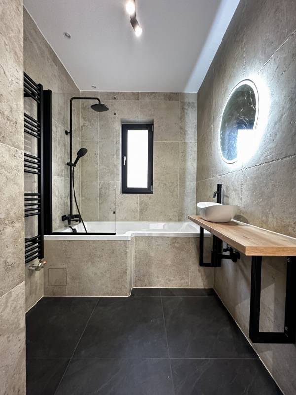 Pécs egyik legkeresettebb részén, a Mecsek lankáin, a Bálicsi úton eladó egy első emeleti, 76 m2 nagyságú, 2 hálószobás + amerikai konyhás nappalis lakás egy újonnan kialakított, mindössze 3 lakásos társasházban. A lakás kialakításánál a hangsúly a minőségen, a kényelemen és az exkluzív életérzésen volt. Főbb jellemzők – Tágas amerikai konyhás nappali, bioetanol-látványkandallóval – Teljesen gépesített, egyedi konyhabútor (sütő, indukciós főzőlap, elszívó, hűtő, mosogatógép) – 2 külön nyíló hálószoba – Extravagáns fürdőszoba + külön WC – Külön tárolóhelyiség mosógép kiállással – Hűtő-fűtő klíma – Prémium burkolatok, különleges világítástechnika Műszaki tartalom – 3 rétegű üvegezésű nyílászárók – Távirányítható motoros redőnyök és szúnyoghálók Külső terek – A nappaliból nyíló 5 m²-es erkély – Privát, térkövezett kb. 100 m²-es kertkapcsolat – Nagyméretű terasz Garázs – 18 m²-es garázs, motoros Hörmann kapuval – Garázs ára: 7,9 M Ft Ez az ingatlan ideális választás igényes fiatal pároknak, kisebb családoknak vagy befektetőknek, akik a Mecsek-oldal nyugalmát keresik kompromisszumok nélkül. Ha egy valóban különleges lakást szeretnél Pécs egyik legjobb utcájában, egyeztessünk időpontot és nézd meg személyesen!