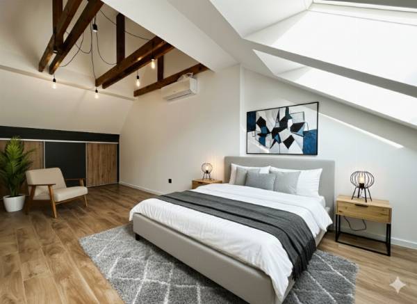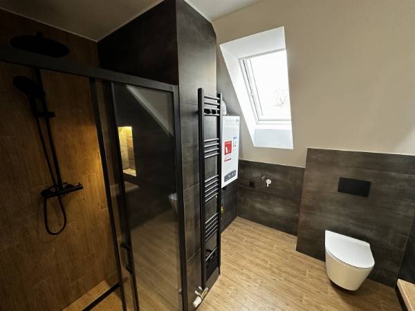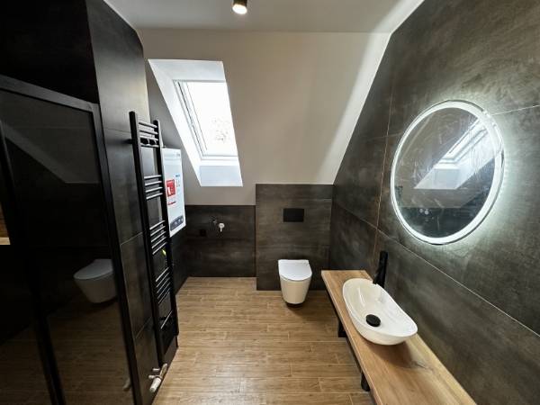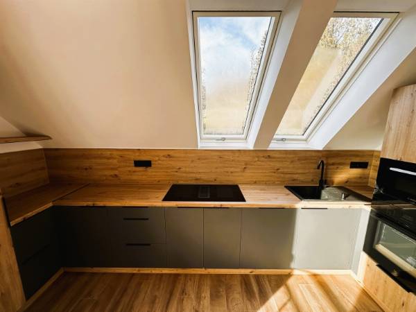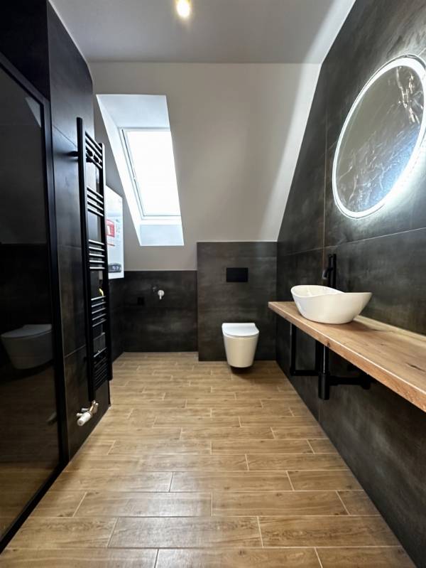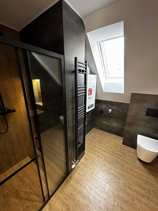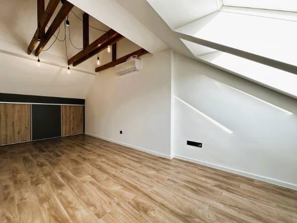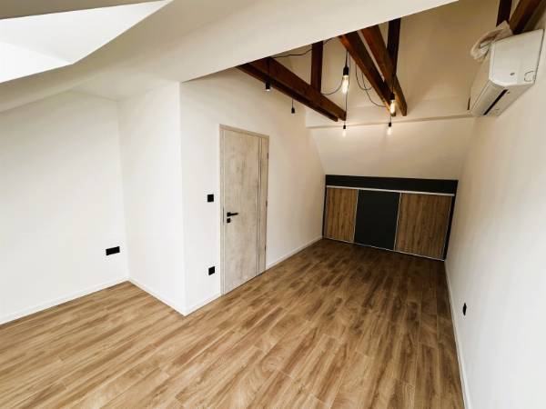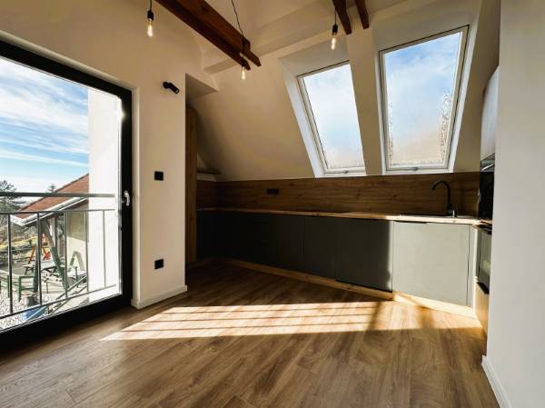 Pécs egyik legkedveltebb utcájában, a Mecsek lankáin, a Bálicsi úton eladó egy tetőtéri, bruttó 65 m²-es (nettó 50 m²), 1 hálószobás + amerikai konyhás nappalis lakás egy újonnan kialakított, mindössze 3 lakásos társasházban. A lakás kialakításánál a cél egy modern, exkluzív és hosszú távon is értékálló otthon megteremtése volt. Főbb jellemzők – Tágas amerikai konyhás nappali – Egyedi, teljesen gépesített konyhabútor (mikró, sütő, indukciós főzőlap, elszívó, hűtő, mosogatógép) – Nagyméretű hálószoba tolóajtós beépített szekrénnyel – Extravagáns fürdőszoba + külön WC – Hűtő-fűtő klíma – Padlófűtés – Prémium burkolatok és különleges világítástechnika Műszaki tartalom – 3 rétegű üvegezésű tetőtéri nyílászárók – Távirányítható motoros redőny a hálószobában Elosztás – Privát kertből minőségi, tömör fa lépcső vezet a lakószintre – Bal oldalon a tágas hálószoba, jobb oldalon a fürdőszoba WC-vel – Különlegesség: 2 egymás melletti tetőerkély a nappaliban Külső terek – Privát kertkapcsolat – Nagyméretű terasz Garázs – 16 m²-es garázs, motoros Hörmann kapuval – Garázs ára: 7,9 M Ft Ideális választás igényes fiatal pároknak, egyedülállóknak vagy befektetőknek, akik a Mecsek-oldal nyugalmát és prémium minőségű otthont keresnek. Ha egy igazán különleges tetőtéri lakást szeretnél Pécs egyik legjobb részén, egyeztessünk időpontot és nézd meg személyesen! (A képek között AI home staging fotók is találhatók.)