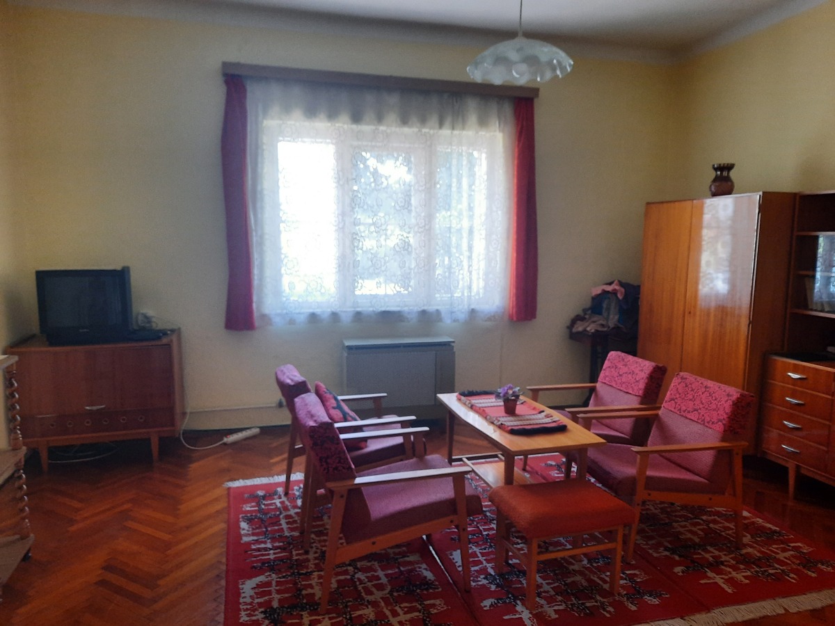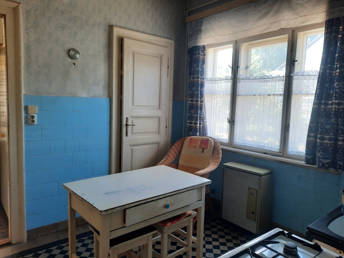 Pécsett a Mohácsi út csendes, hátsó részén eladó egy ikerház egyik fele. Az ingatlanhoz egy kerítéssel védett 475 nm-es telek tartozik. A ház előtt és mellett gondozott veteményes található. A ház mellett nagy, betonozott aljzatú tároló kapott helyett. A ház 76 nm-én az alábbi helyiségek helyezkednek el: előszoba : 10,0 nm közlekedő: 3,6 nm kamra: 2,7 nm konyha-étkező : 10,4 nm fürdőszoba : 6,1 nm szoba 1 : 19,2 nm szoba 2 : 24,0 nm A fűtést konvektorok , a melegvizet egy FÉG kazán biztosítja .A szobákban jó állapotú parketta, a többi helyiségben cementlap burkolat van. Az ingatlan teljesen száraz, frissen festett, azonnal birtokba vehető. Buszmegálló, bolt 70 méterre található. Sok lehetőséggel bíró, kisebb átalakítással a mai igényeknek megfelelő otthonná alakítható ingatlan nagyon jó áron. Iár : 32,9 M Ft érd: 70/3878-032