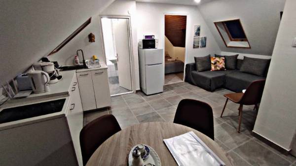 Harkány nyugodt, belvároshoz közeli részén berendezéssel együtt eladó egy 454 m2- es telken elhelyezkedő, 273 m2- es, tulajdoni lapon lakóház megnevezésű ingatlan, mely jelenleg egy jól működő és pénzt termelő apartmanházként üzemel. Akár teljes berendezéssel! A ház 4 szintes, mely alagsorból (kazánház és tárolók), földszintből (közösségi tér, két apartman és konyha- étkező), 1. emeletből (3 apartman), és tetőtérből (két hálószobás apartman) áll. Alaprajzok a fotók között megtalálhatók. 2020-21'- es évben felújításon esett át, mely magában foglalta a fürdőszobák felújítását, burkolatok cseréjét, nyílászárók cseréjét, konyhabútorok cseréjét, felújítását és egyéb szépészeti megoldásokat. A ház fűtését gázkazán biztosítja padlófűtéssel. Az épület jól tartja a hőt, hőszigetelt tetőtérnek és a vastag 40 cm- es falazatának köszönhetően! Fontos, hogy a padlófűtésnek köszönhetően könnyen kivitelezhető a fűtés korszerűsítés hőszivattyús megoldással és akár napelemmel kiegészítve. Ami még fontos: Az ingatlan villamos hálózata is fel lett újítva az apartmanok kialakításakor, 3 fázis van. Parkolás 6 autóval is megoldható (a jelenlegi 6 apartmanhoz). melyet a dupla garázs és térkövezett beállók biztosítanak. Lehetőségek az ingatlanban: - apartmanként tovább üzemeltetni és pénzt keresni vele, - több generációs családi házként használni, - részben otthonként használni, részben bérbe adni, - alkalmas több külön bejáratú lakás kialakítására is, - orvosi rendelőnek, szolgáltatóipari vállalkozásnak kiadni, felső szintet lakásként használni. Amennyiben nagyobb alapterületű otthont keres, akár több generációs házat, vagy tovább működtetné apartmanként, netán kialakítanak több lakást eladásra, bérbeadásra, akkor keressen bizalommal!