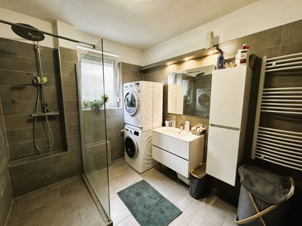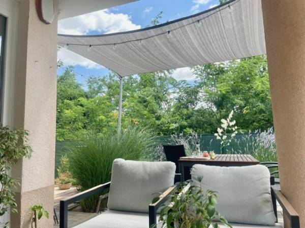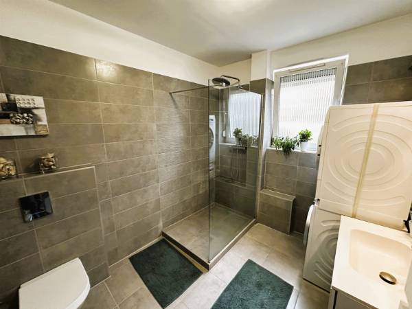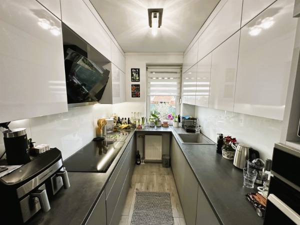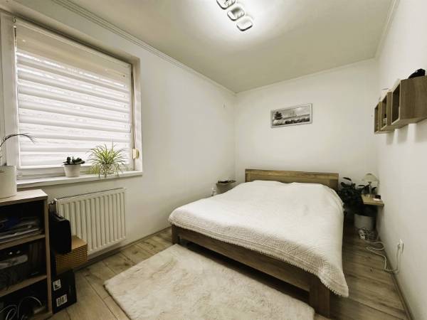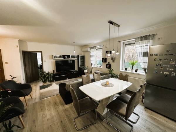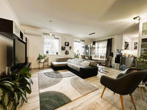 Pécs egyik legnépszerűbb városrészén, a Rigóderrel szemben, zárt lakóparkban kínálok eladásra egy társasház földszintjén található 70m2-es KERTKAPCSOLATOS lakást. A lakás elosztása kiváló. A hosszú, tágas előszobából nyílik 2 külön hálószoba, fürdőszoba WC-vel, egy amerikai konyhás nappali, majd egy 6m2-es terasz közvetlen kertkapcsolattal. A kert 60 m2, ahonnan gyönyörű panoráma nyílik a Mecsekre. Az ingatlan 2022-ben teljes körű belső felújításon esett át, mely magában foglalta: Belső nyílászárók cseréjét, fürdőszoba felújítását, burkolatok cseréjét, új modern konyhabútor beépítését. A konyhában minőségi beépített gépek találhatók. Fűtése házközponti rendszerű, továbbá a nappaliban és az egyik hálószobába hűtő-fűtő klíma biztosítja az egész éves komfortot. A lakópark csendes, rendezett, biztonságos környezetben helyezkedik el. A közelben elérhető élelmiszerbolt, iskola, tömegközlekedési eszközök. A lakásban található bútorzat és berendezés megegyezés tárgyát képezi! Ha egy modern, kertkapcsolatos, felújított lakást keresel Pécs egyik legkedveltebb részén, hívj bizalommal, és tekintsd meg személyesen!