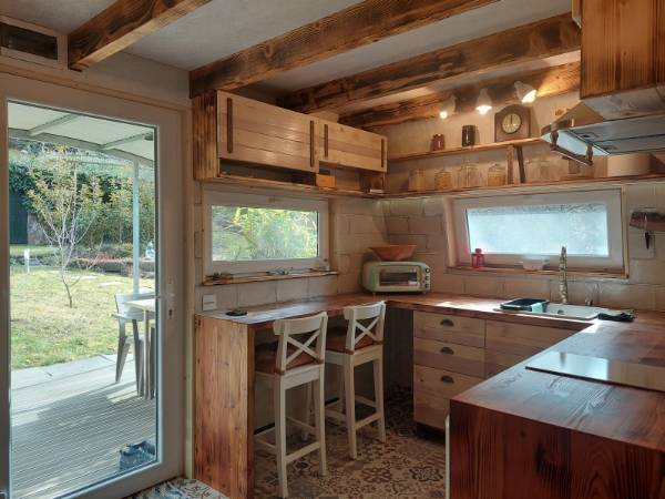 Pécs–Mecsekszentkút festői, nyugodt részén, közvetlenül az erdő szélén kínálunk megvételre egy különleges atmoszférájú ingatlant, ahol a természet közelsége és a stílusos, modern komfort tökéletes egységet alkot. A patak csobogása, a madárcsicsergés és a harmonikusan kialakított környezet valódi feltöltődést biztosít a mindennapokban. A telek központi éke a 2 éve épült, 16 m² alapterületű, kétszintes tiny house, amely kompakt mérete ellenére teljes értékű életteret kínál. A házhoz egy 10 m²-es terasz kapcsolódik, így a hasznos tér a szabadban is tovább bővül. Az alsó szinten egy légtérben található a konyha és a nappali, valamint egy fürdőszoba épített zuhanyzóval és WC-vel. A tetőtérben kényelmes hálószoba került kialakításra egyedi beépített tárolókkal. Az ingatlan teljes berendezéssel együtt eladó, a vételár minden bútort és felszerelést tartalmaz, így azonnal birtokba vehető. A belső kialakítást egyedi tervezésű bútorok, prémium minőségű, természetes anyaghasználat és harmonikus design jellemzi. A műszaki tartalom is kiemelkedő: kiváló hőszigetelés, fűtésre optimalizált klíma berendezés, minőségi műanyag nyílászárók és bejárati ajtó, minden nyílászárón szúnyoghálóval. A ház és a 6 m²-es tároló egyaránt talajcsavaros alapra épült. Kamerarendszer és ipari áram is rendelkezésre áll. Az 1117 m²-es, összközműves, 15%-os beépíthetőségű, parkosított építési telek valódi ritkaság. A birtokon áthaladó patak, saját ásott kút, természetes forrás és egy hangulatos kis tó teszik igazán különlegessé. A gondosan ápolt kertet növényritkaságok gazdagítják, így a környezet nemcsak esztétikai élményt, hanem valódi nyugalmat is kínál. A belváros mindössze 10 km-re található, autóval gyorsan és kényelmesen elérhető, a buszmegálló pedig körülbelül 10 perc kellemes séta távolságra helyezkedik el. A gördülékeny és biztonságos adásvétel érdekében teljes körű ügyvédi hátteret biztosítunk. Ha egy valóban különleges, természetközeli, mégis prémium kialakítású tiny house-t keres, amely nem csupán ingatlan, hanem életérzés, akkor ezt az ingatlant érdemes személyesen is megtapasztalni. Keressen bizalommal, és nézze meg – mert az ilyen lehetőség ritkán adódik.