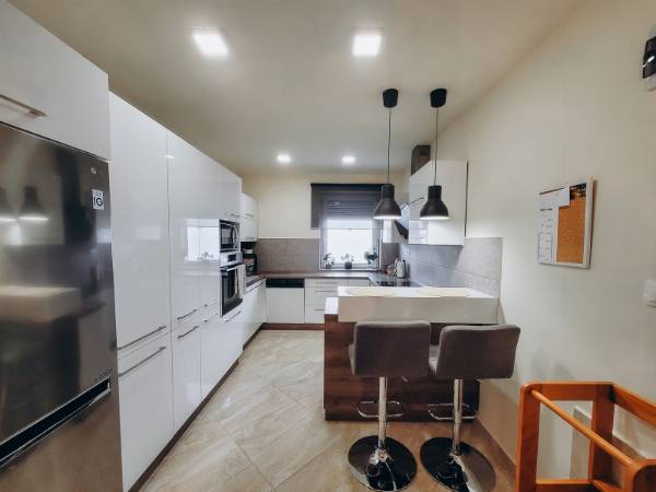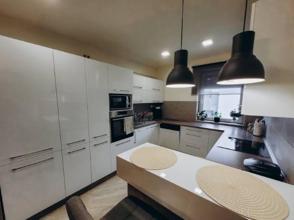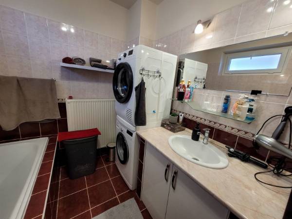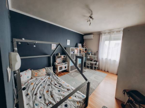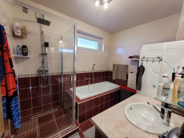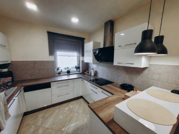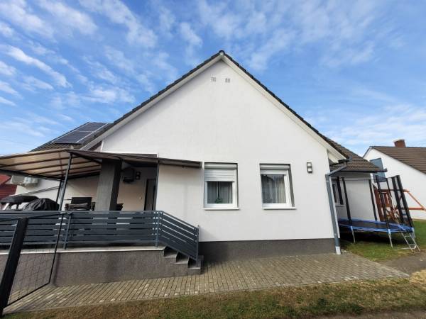 Eladó Máriagyűd egyik rendezett utcájában egy 1996-ban épült, folyamatosan karbantartott és modernizált családi ház. Az ingatlan 108 m², 3 szoba, külön WC és fürdőszoba, valamint egy tágas amerikai konyhás nappali található benne. Az épület Porotherm 38-as téglából készült, amely teljes körű homlokzati, lábazati és födém hőszigetelést is kapott, így energetikailag rendkívül stabil. Külön értéknövelő tényező a beton födém, amelynek köszönhetően a tetőtér beépíthető, így a lakótér a jövőben tetszés szerint bővíthető. Az ingatlan fenntartási költségei minimálisak, köszönhetően az 5 kW-os napelemrendszernek, amely a teljes áramfogyasztást fedezi. A rendszer 7,5 kW-ig bővíthető, és ami a legfontosabb: még 8 évig kedvező szaldó elszámolásban marad. A fűtési rendszer több lábon áll, gázkazánnal és vegyes tüzelésű kazánnal is üzemeltethető, a helyiségekben komfortos padlófűtéssel. A gépészeti kialakítás lehetővé teszi a hőszivattyús fűtésre való egyszerű átállást is. A ház hűtéséről és kiegészítő fűtéséről klímák gondoskodnak. A telken egy 32 m²-es tégla melléképület is található, amelyben egy 22 m²-es szerelőaknás garázs, valamint egy 10 m²-es tároló és kazánház kapott helyet. Az épület mögött egy statikailag előkészített, betonozott terület található, amely ideális medence elhelyezésére. Az ingatlan (beleértve az összes nyílászárót és a garázst is) teljes körű, távfelügyeletre bekötött riasztórendszerrel védett. Ez a kiváló műszaki állapotú ház ideális választás azoknak, akik értékállóságot és alacsony rezsiköltségeket keresnek. Amennyiben felkeltette érdeklődését, keressen bizalommal!