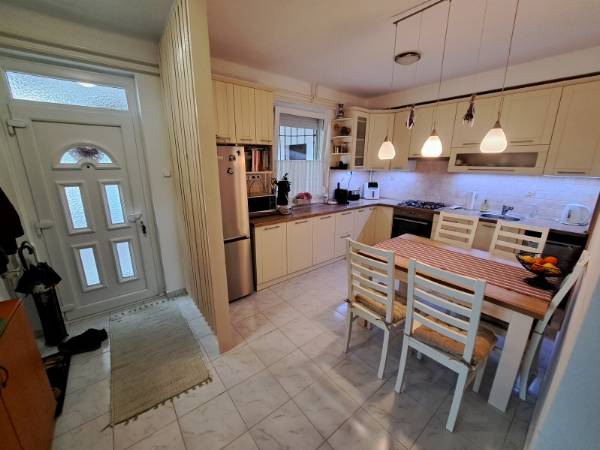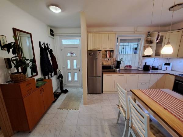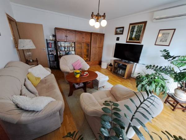 Pécs egyik legkeresettebb, csendes, zöldövezeti részén, a mecsekoldali Angster József utcában kínálunk eladásra egy remek adottságokkal rendelkező felújított, 1. emeleti, 92 m2-es, 4 szobás, teraszos téglalakást saját garázzsal! A lakás alapterülete 92 m2, ehhez tartozik egy 47.5 m2-es terasz, egy saját és egy közös tároló, a lakás alatt pár lépcsőfoknyi távolságra pedig egy utcafronti 21 m2-es tágas garázs. Az ingatlan dél-délkeleti tájolású, remek elosztású, mindegyik szoba az előszobából vagy a folyosóról külön-külön nyílik. Helyiségek: nappali - 2 hálószoba - dolgozószoba - konyha+étkező - kamra - fürdőszoba + wc, és egy különálló wc. A 47.5 m2-es mediterrán stílusú napfényes terasz a nappaliból, és a mellette lévő szobából is megközelíthető. A déli fekvésű terasz tökéletes pihenésre vagy baráti összejövetelekre. A lakás nagyon szép állapotú, 2022-2025 között felújításon esett át. Felújítás részletei: 2022-ben a terasz újra lett burkolva, 2023-ban a parketta újra lett csiszolva és lakkozva, 2 hűtő-fűtő klíma lett beépítve egy a nappaliba, egy a folyosóra. 2024-ben a konyhai gépek le lettek cserélve (hűtő-sütő-gáz főzőlap-mosogatógép), és újra lett festve a lakás. 2025-ben új zuhanykabin került a fürdőszobába, és a nyílászárók lettek felújítva. Az összes nyílászáró redőnnyel van ellátva, a nappaliban az elektromos redőny a kanapéról távirányítóval vagy akár okostelefonról is irányítható. A gépesített konyha és a beépített bútorok a vételár részét képezik, a további berendezés megegyezés szerint maradhat. Az lakástól pár perc sétával elérhető bölcsőde, óvoda, iskola, játszótér, gyógyszertár, áruház, buszmegállók. Olyan családoknak, pároknak ajánljuk az ingatlant, akik értékelik a Mecsekoldal nyugalmát és tisztaságát, de nem szeretnének lemondani a város közelségéről. További információkért keressen bizalommal!