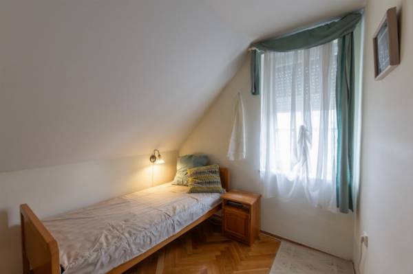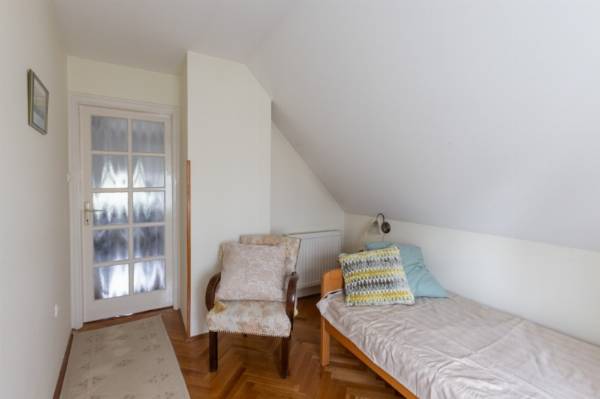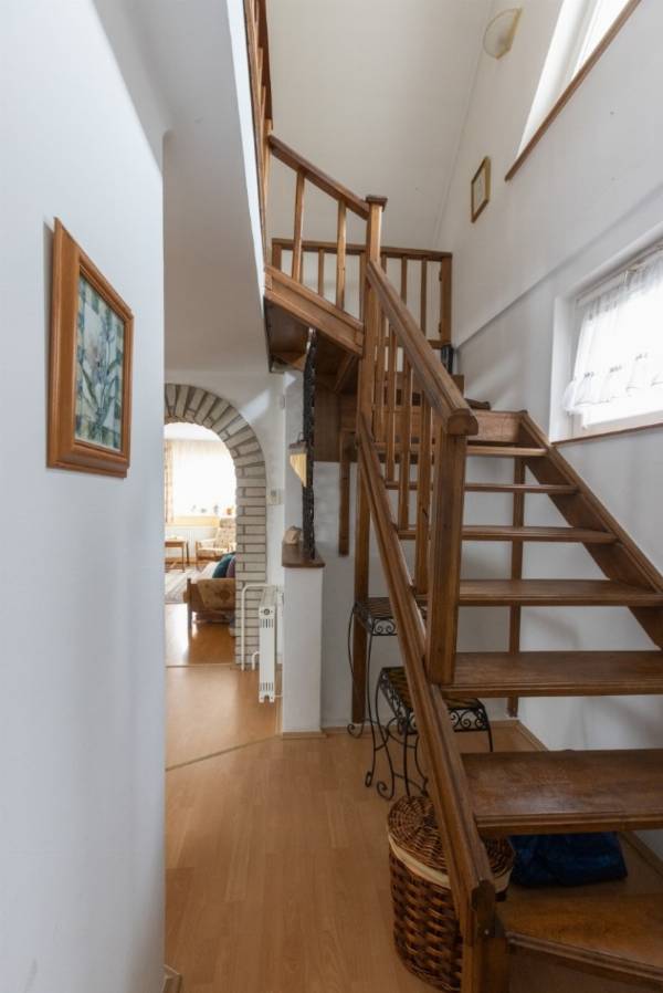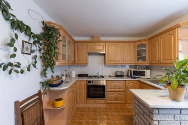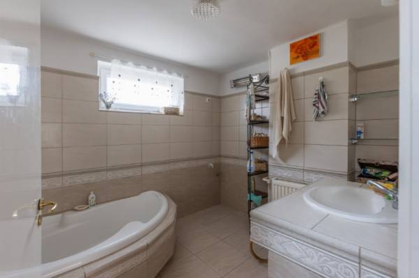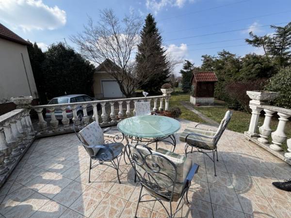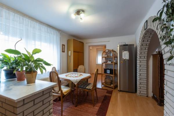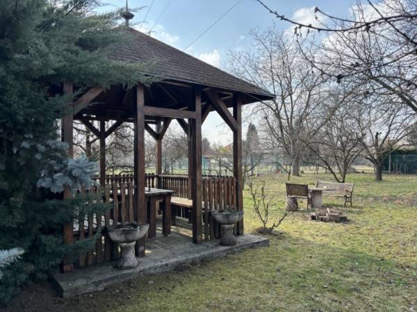 Nagy telkes családi ház eladó Pécs–Újhegy csendes részén Pécs–Újhegy nyugodt, zöldövezeti részén eladó egy 96 m²-es, belső kétszintes családi ház 1556 m²-es, sík, gondozott és teljesen körbekerített telken. Ideális választás azoknak, akik csendes környezetben, nagy kerttel keresnek otthont. Kert Különleges hangulatú, parkosított kert 130 éves cseresznyefával, több termő gyümölcsfával (alma, dió, körte, füge, meggy), japán juharral és fenyőkkel. A telken jó vízhozamú kút és egy fából készült filagória is található. Ház elrendezése Kb. 25 éve épült, praktikus kialakítású ház. Földszint: amerikai konyhás étkező külön nappali teraszkapcsolattal fürdőszoba külön WC Emelet: 3 szoba (két kisebb igény szerint egybenyitható) WC A nappaliból közvetlen kijárat nyílik a járólapozott teraszra és a kertbe. Szuterén 30 m²-es, két helyiségből álló szuterén külön kertkapcsolatos bejárattal, amely tárolónak, műhelynek vagy hobbihelyiségnek is alkalmas. Garázs és melléképület 24 m²-es garázs Hörmann billenő kapuval térkövezett felhajtó 7,6 m²-es külön bejáratú szerszámtároló Műszaki jellemzők gáz központi fűtés jó állapotú kazánnal redőny minden nyílászárón részben műanyag nyílászárók tágas fürdő sarokkáddal fa lépcső az emeletre beépített előszobaszekrény 12 cm födémszigetelés 10 cm homlokzati hőszigetelés Egyéb Az ingatlan tisztasági festés után azonnal költözhető. Fenntartási költsége kedvező, tehermentes és gyorsan birtokba vehető.