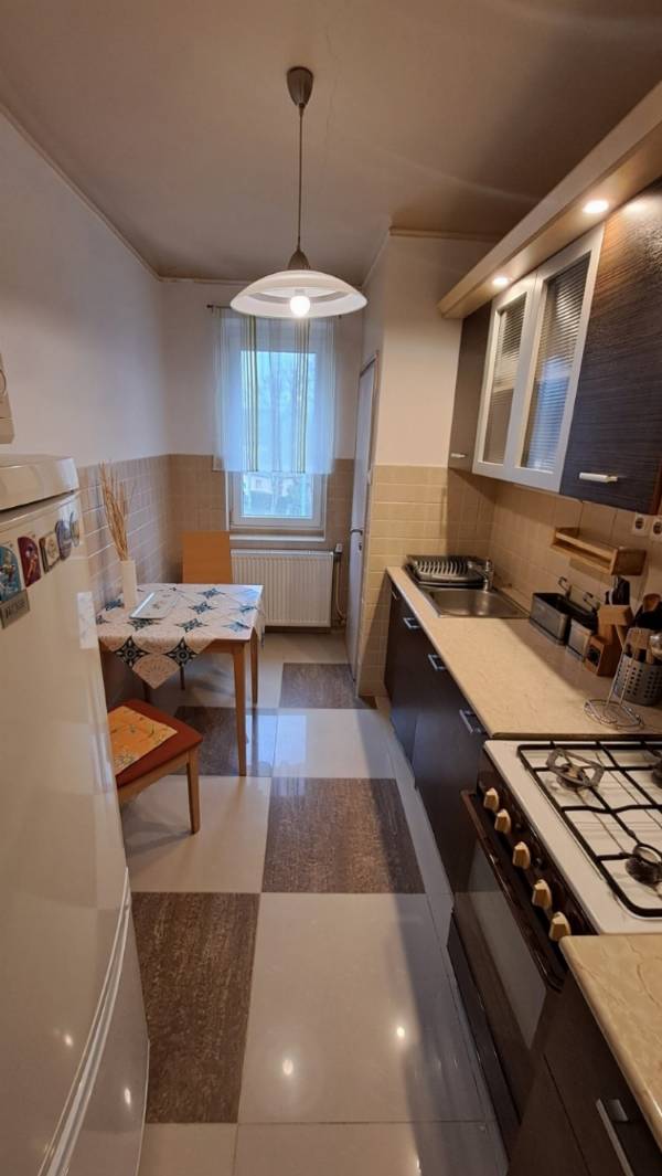 Pécsen, a Komlói út elején, szigetelt rendezett társasházban, egy felújított 3. emeleti erkélyes tégla lakás teljes bútorzattal együtt eladó! A lakás 38 m2 alapterületű, szépen felújított állapotú, fiatalos hangulatú. Egy szépen karbantartott, rendezett tégla építésű társasház 3. emeletén található. Az épület kívülről szigetelt. A lakás teljeskörűen felújított, többek között új víz és villanyvezetékek, műanyag ablakok, új fűtés rendszer került kialakításra. A nagyméretű szobában egy válaszfal leválasztással praktikusan kialakítottak egy háló fülkét is. A szobából nyílik egy kis erkély is. Ezen kívül a lakásban található még egy kellemes méretű konhya, tovább egy zühanyzós fürdőszoba és szintén itt található a WC is. A lakás fenntartása rendkívül kedvező, köszönhetően a korszerű gázkazánnak, a nyílászáróknak és az épület szigetelésének. A nappaliban klíma is beszerelésre került. A lakásban található összes bútor és berendezés a vételár részét képezi. Az ingatlanhoz tartozik még egy saját használatú alagsori tároló is. A parkolás az épület előtt ingyenes. A környéken minden szükséges kiszolgálóegység, megtalálható, a belváros 10 perc alatt elérhető. A lakás ideális lehet akár befektetési célra, folyamatosan bérbe volt adva, de akár első lakásnak, párok részére is. A lakás tehermentes, a teljes kifizetés után azonnal birtokba vehető, tehát ide már csak beköltözni kell.