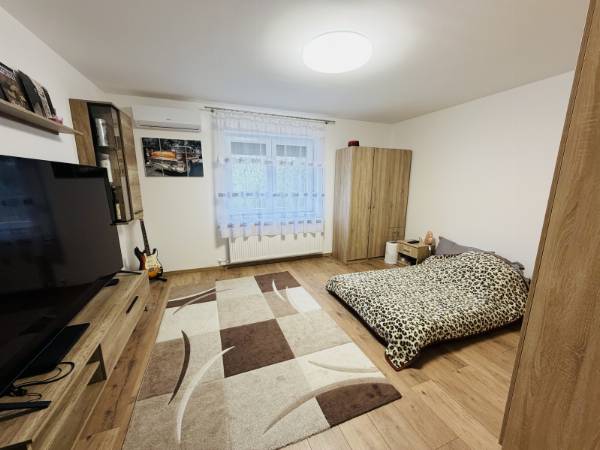 Pécs-Szabolcsfalu csendes kis utcájában eladó egy 80 m2-es teljeskörűen felújított családi ház. Az ingatlan egy 767 m2-es összközműves telken található. Tartozik hozzá egy 20 m2-es garázs amely biztosítja az autó kényelmét. A ház elosztása kiváló. Az előszobából megközelíthető egy fürdő WC-el, egy külön vendég WC, tágas világos amerikai-konyhás nappali, kettő külön nyíló tágas szoba, illetve egy mosókonyha ahol megtalálható egy vadonatÚJ kondenzációs gázkazán! Teljeskörű felújításon esett át az ingatlan, ahol a teljes villany, víz, és csatorna hálózat csere is megtörtént. Új mérőórák kerültek fel, 2 DB HŰTŐ-FŰTŐ KLÍMA, VÍZLÁGYÍTÓ/VÍZTISZTÍTÓ berendezés. A konyha teljesen új, modern, beépített gépesített készülékekkel felszerelt, melyek GARANCIÁLISAK! Az amerikai konyha-nappali világosságát egy tolóajtós panoráma ablak biztosítja, harmonikás szúnyoghálóval illetve ELEKTROMOS (távirányítós) REDŐNNYEL! Teljesen ÚJ TETŐ került az ingatlanra, illetve a padlástérben 35 cm-es födémszigetelés, amely jelentősen csökkenti a fűtési költségeket! A külső szigetelést valamint színezést, a kert/udvar befejezését az új tulajdonos saját igényei alapján fejezheti be. Új távirányítós elektromos kapu adja a biztonságot. Az ingatlan tehermentes! Hívjon, tekintse meg és tegyen egy ajánlatot!