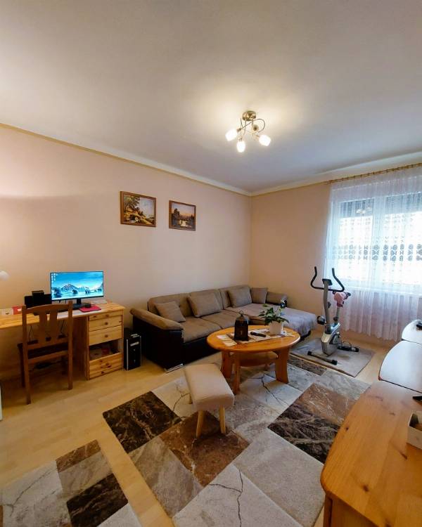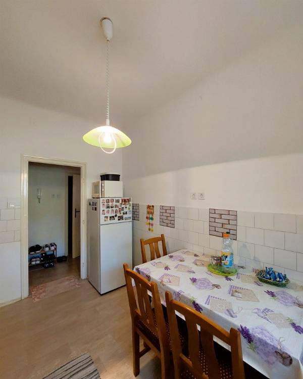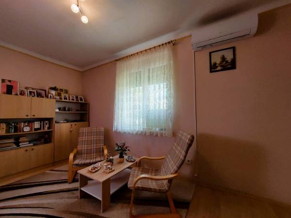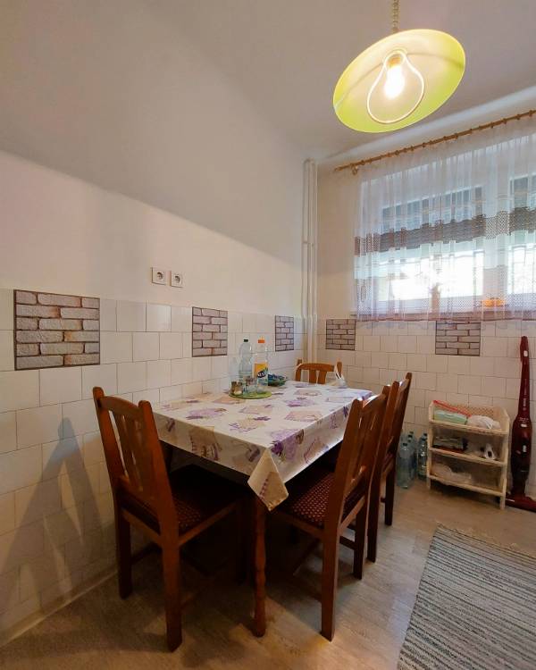 Pécs Uránvárosának keresett, nyugodt részén, a Páfrány utca közelében kínálunk eladásra egy 59 m²-es, földszinti, 2,5 szobás, tégla építésű, szigetelt, nagyon jó állapotú lakást. Az ingatlan ideális választás lehet saját célra vagy befektetésnek is. A lakás praktikus elrendezésű, világos és tágas terekkel rendelkezik. A szobákban laminált padló, a többi helyiségben linóleum található. A fürdőszoba és a WC külön helyiségben helyezkedik el, ami a mindennapok során kényelmes megoldást nyújt. Az ingatlan műszaki állapota kiváló: A nyílászárók cseréje megtörtént (modern műanyag ablakok és bejárati ajtó) Redőnnyel és szúnyoghálóval felszereltek. A lakás egy éves, garanciális klímaberendezéssel felszerelt, amely a nyári hónapokban is kellemes hőmérsékletet biztosít. A társasház központi fűtéses, a lakásban a radiátorok ki lettek cserélve, és helyiségenként szabályozhatók. Az épület hőszigetelt, így alacsony rezsiköltségek jellemzik. A főzést vezetékes gáz biztosítja. A konyhából nyíló kamra praktikus tárolási lehetőséget biztosít a mindennapokban. A lakáshoz egy alagsori tároló is tartozik, amely további helyet kínál a ritkábban használt dolgok számára. A lakás észak–dél–nyugati tájolásának köszönhetően kellemes fényviszonyokkal rendelkezik. A társasház csendes és rendezett, a környék ellátottsága kiváló: boltok, rendelő és egyéb szolgáltatások néhány perc sétával elérhetők, a buszmegálló pedig a közelben található. Az ingatlan ideális: - családoknak - idősebbeknek (földszinti elhelyezkedés miatt) - befektetőknek Igény esetén bútorozottan is megvásárolható, külön megállapodás alapján. Teljes körű ügyintézésben segítünk, beleértve a jogi hátteret és a hitelügyintézést is. Hívjon bizalommal, tekintse meg személyesen, és tegyen ajánlatot!