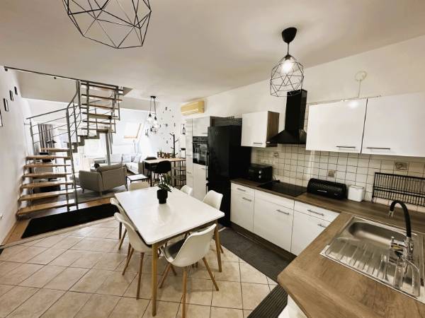 Belső kétszintes, 115 m²-es lakás eladó Harkány központjában – kiváló elosztás, dupla komfort! Harkány központjában, a Kossuth Lajos utcában, 2004-ben épült társasház 2. emeletén eladó egy 115 m²-es, jó állapotú, belső kétszintes lakás. Elosztás: – alsó szint: amerikai konyha-nappali, hálószoba, fürdőszoba, tároló, erkély – felső szint: 2 külön nyíló hálószoba, fürdőszoba, gardrób Főbb jellemzők: – tágas, világos terek – gépesített konyha – minden szobában és a nappaliban klíma – házközponti fűtés egyedi méréssel – duplakomfortos kialakítás – jó állapot, azonnal költözhető – tehermentes A lakáshoz tartozik egy zárt udvari autóbeálló, amely 2,5 M Ft-ért kötelezően megvásárolandó. A berendezés igény szerint alku tárgyát képezheti. Lokáció: – Harkányi Gyógyfürdő pár perc sétára – éttermek, boltok, szolgáltatások a közelben – kiváló befektetés (kiadásra is ideális) Otthon vagy befektetés? Itt mindkettő adott. Hívjon, tekintse meg, és tegyen ajánlatot!