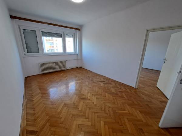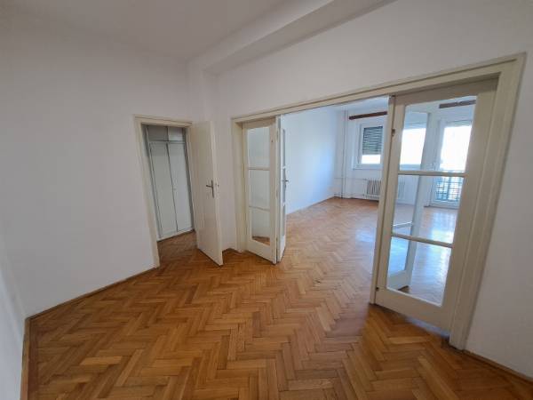 Kiadó Pécs belvárosban a Jókai utcában egy 6 emeletes liftes társasház 4. emeletén a képeken látható tágas 71 m2-es, 2 szobás, bútorozatlan, és részben gépesített erkélyes lakás! A lakás frissen van festve, az összes nyílászáró cserélve lett, redőnnyel és szúnyoghálóval felszerelve. Fűtés: távfűtés. Helyiségek: 2 szoba, konyha-étkező, fürdőszoba, wc. Mindkét szoba a folyosóról külön-külön nyílik, de egybe is nyílnak a szobák. Szobatiszta kisállat tartására van lehetőség egyeztetést követően. Dohányozni kizárólag az erkélyen lehet. A környéken fizetős a parkolás. A lakás hosszútávra, de minimum 1 évre bérelhető, azonnal költözhető, a bérléshez 2 havi kaució szükséges.