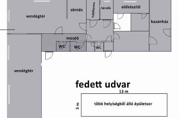 A kb. 250 m2-es egykor presszóként, kocsmaként működő ingatlan két, 50 m2-es hatalmas vendégteret foglal magába. Egyik a söntéssel egy térben helyezkedik el. Mögötte a HŰTŐKAMRA, konyhához szükséges előkészítő, mosogató és tároló helyiségek, öltözők találhatók. Több mosdó, WC helyiség, valamint egy PINCE is a zavartalan működést szolgálta. A FŰTÉST vegyes tüzelésű kazán RADIÁTOROKKAL biztosítja. Az épület hátsó részében egy kiszolgáló helyiség található, mely közvetlenül a FEDETT, HATALMAS, HÁROM OLDALRÓL FALAKKAL HATÁROLT, SZÉLVÉDETT UDVARRÉSZRE nyílik. Az épülettel szemben a fedett udvar másik széleként egy 65 m2-es épületsor van, mely több kisebb tároló helyiségből áll. A kocsma épület mögött az egykori tekepálya és a hatalmas füves udvar található, melyre a másik utcáról külön autó bejárattal rendelkezik. Az épület remek állapotban van, vállalkozáshoz, raktározáshoz kiváló adottságokkal rendelkezik. Gázcsonk a telken. Hívjon, hogy Öné legyen ez a NAGYSZERŰ INGATLAN!