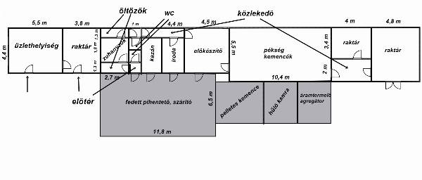 A TÉGLÁBÓL épült épületsor 200 m2 hasznos területtel rendelkezik. Az egykori lakóházból 20 éven át működő péküzemet és egy boltot alakítottak ki. A pékség 2 éve nem üzemel. A működéshez szükséges TELJES FELSZERELÉS, gépek, segédberendezések, kemencék mind-mind rendelkezésre állnak. Az épület utcafronti oldalán a bolt lett kialakítva a hozzátartozó TÁGAS RAKTÁRRAL. Hátrébb az öltözők, zuhanyzók, WC-k kaptak helyet. Továbbhaladva két oldalról is megközelíthető iroda van, kazánház a GÁZKAZÁNNAK, mely RADIÁTOROKON keresztül biztosítja a fűtést. Ez után a sütéshez szükséges előkészítő helyiség lett kialakítva, majd a sütöde. A sütödében egy pihentető, kelesztő kamra, valamint HÁROM KEMENCE található. Egy futószalagos, pelletes kazán fűtésű, egy olajégős kemence, valamint egy forgó zsámolyos elektromos kemence áll rendelkezésre. A sütöde után még két nagy raktárhelyiség segít a tárolásban. Az épületsor előtt közvetlenül a 77 M2-ES FEDETT, ventillátorral ÁTSZELLŐZTETHETŐ TÁROLÓ, PIHENTETŐ KÉSZÁRU RAKTÁR került kialakításra. Mellette a HŰTŐKAMRA van. Áramszünet esetére nagy teljesítményű dízel ÁRAMFEJLESZTŐ biztosítja a működéshez szükséges villanyáramot. Az ingatlanhoz 3 042m2-es, nagy telek tartozik. Az ingatlannal együtt eladó a mellette külön helyrajzi számon szereplő lakóház, udvar, gazdasági épület megnevezésű, a valóságban teljesen üres, 3 260 m2-es telek, így összesen 6 302 m2-nyi hatalmas terület áll rendelkezésre. Egy átalakítással ismét LAKÓHÁZZÁ ALAKÍTHATÓ az ingatlan. Így gazdálkodásra, vállalkozáshoz, állandó lakhelyként egyaránt KITŰNŐ VÁLASZTÁS ez az 50M IRÁNYÁRON kínált ingatlan. HÍVJON, hogy az Öné legyen ez a REMEK lehetőségeket kínáló INGATLAN!